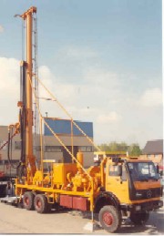 with suction pump or air lift drilling with compressor up to borehole dia. 1400 mm in front of the mast
